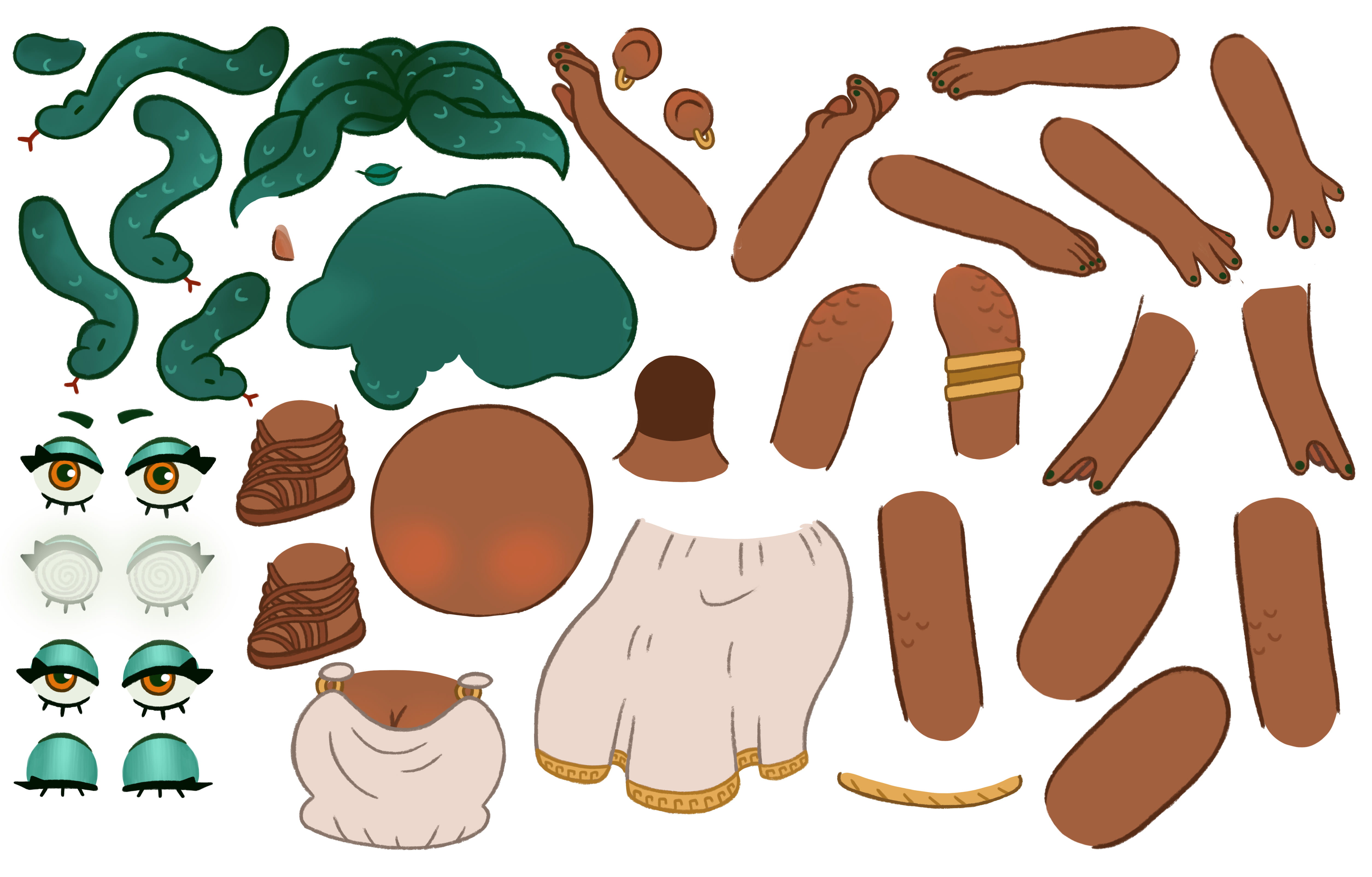 Blind Date After Effects, Premiere Pro, & Photoshop - 2024 This short animated film was made for my Senior Thesis project in Digital Media at UNC Charlotte. I completed everything from writing, concept art, and storyboards to asset creation, rigging, and animation. The story is centered around Medusa and her journey to find a partner. Featuring an assortment of monsters and cryptids at a local speed-dating event, the film explores relatable challenges of relationships—particularly for feminine-presenting individuals. I wanted to incorporate a sense of playfulness and humor into this mundane but daunting activity to reduce its intimidating appearance while representing a diverse range of characters. Music: Anyone by Anna Vtipil Exhibited in UNCC's 2024 Gold Reel Film Festival. BlindDateStoryboard.pdf AllHungUp-storyboard.pdf Animation involved preparing all assets in Photoshop in separate layers, then using Duik Bassel in After Effects to rig the characters. I wanted to stick with a 2D puppet-like appearance, both as a stylistic and time-conscious choice, without things looking overly stiff.