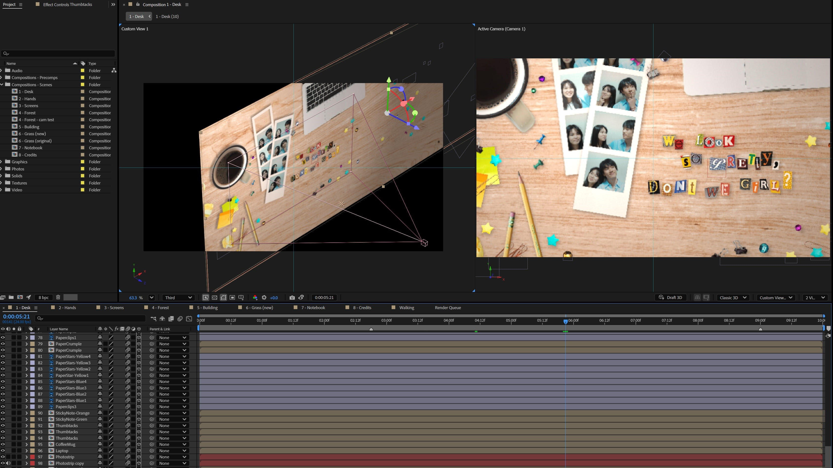 Milwaukee's Best After Effects & Premiere Pro - 2025 The innocence and excitement of new love bring to life Milwaukee's Best by The Wrecks in this fan-made music video. The mixed media approach conveys a whimsical, charmingly rough-around-the-edges narrative. MilwaukeesBest-storyboard.pdf This project was largely an exercise in working in 3D space in After Effects, creating a 2.5D environment with flat images and video. I also experimented with incorporating physical media, bringing a handmade touch to the visuals.